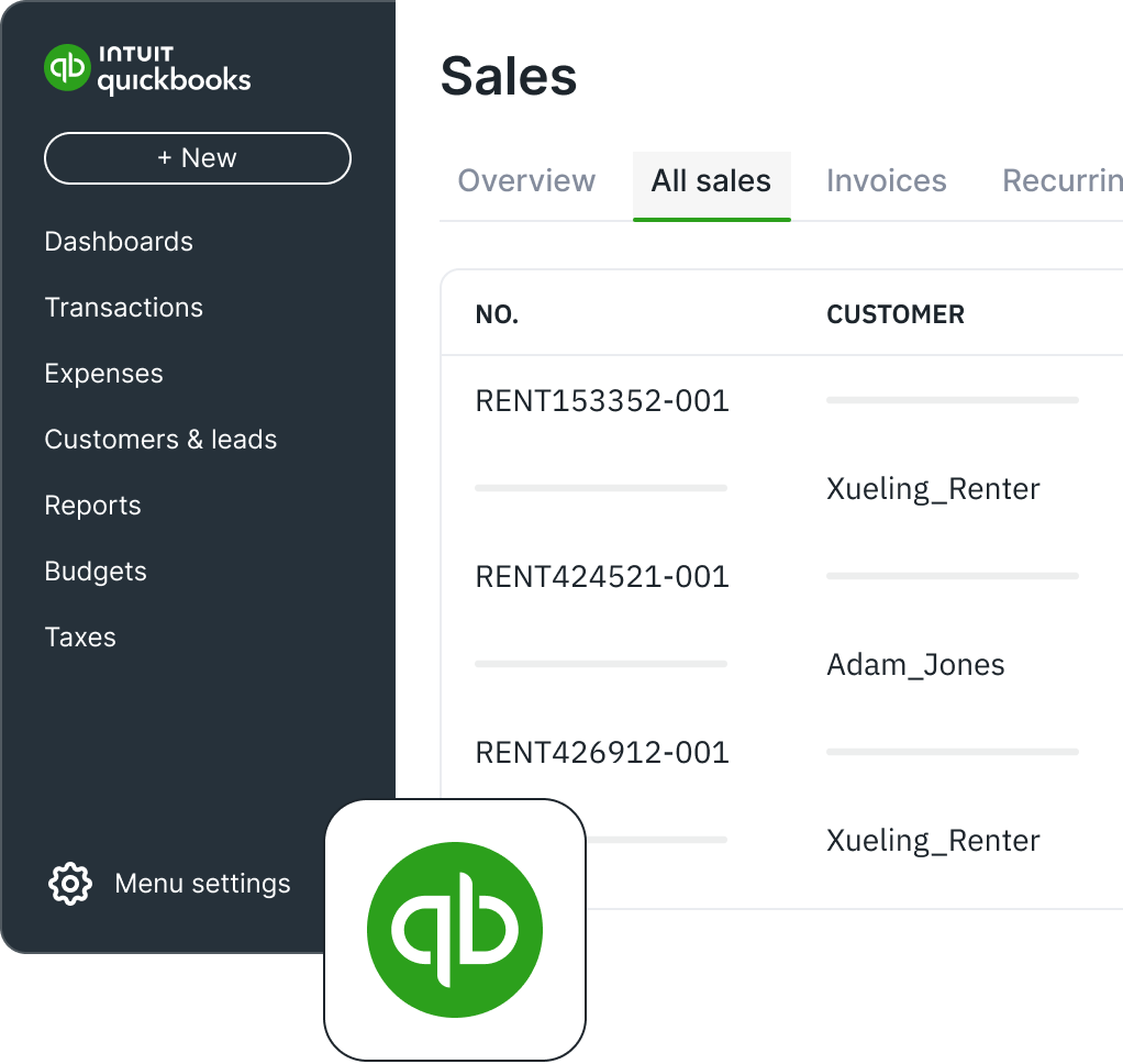 Sync your rental transactions, invoices, and payments to QuickBooks Online - so your books stay accurate and up to date.
